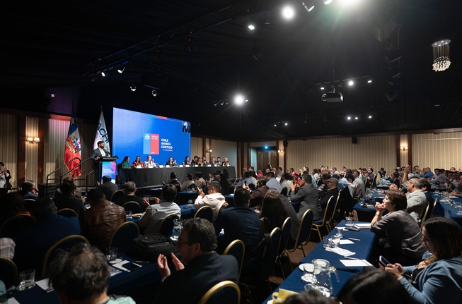 El encuentro contó también con la participación de la ministra Secretaría General de Gobierno, Camila Vallejo, y del ministro Secretaría General de la Presidencia, Álvaro Elizalde, y con presentaciones de la subsecretaria de Desarrollo Regional y Administrativo, Francisca Perales, y del subsecretario de Prevención del Delito, Eduardo Vergara.