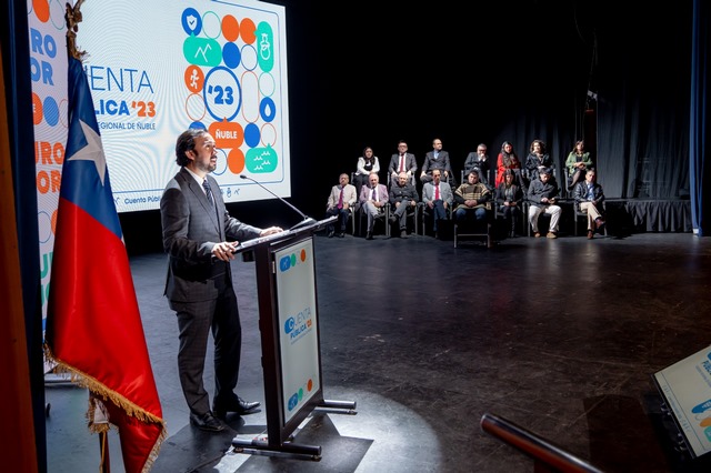 A través de cinco ejes, en los que agrupó las obras ejecutadas durante el 2023, el Gobernador Óscar Crisóstomo rindió cuenta ante el Consejo Regional de Ñuble. Frente a más 1.200 ñublensinos y ñublensinas que llegaron hasta el Teatro Municipal de Chillán, además de alcaldes, seremis, parlamentarios, directores de servicios, la máxima autoridad destacó la descentralización de los recursos gracias al trabajo colaborativo con los municipios, lo que permitió llegar con inversión regional a las 21 comunas.