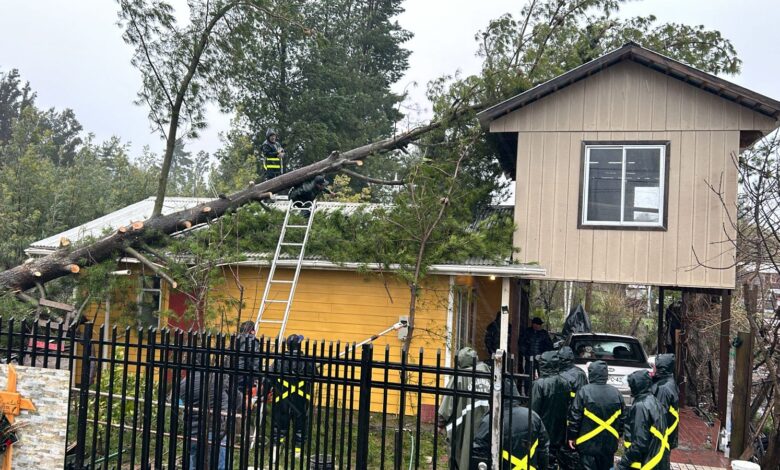 “Se mantienen las lluvias intensas y los vientos muy fuertes, los que ocasionaron caída de árboles en los caminos de sectores rurales y urbanos de la comuna, también cayeron algunos árboles en estructuras de vivienda donde afortunadamente solo dejaron pérdidas y daños materiales, sin personas lesionadas hasta ahora. También ha habido voladura de techumbres, abordadas por personal municipal, y continuamos atentos a nuevas situaciones que se pudieran generar por este evento climático anunciado previamente”, señaló el encargado comunal de Emergencia Municipal, Cristian Sanhueza, pasadas las 18:00 horas.