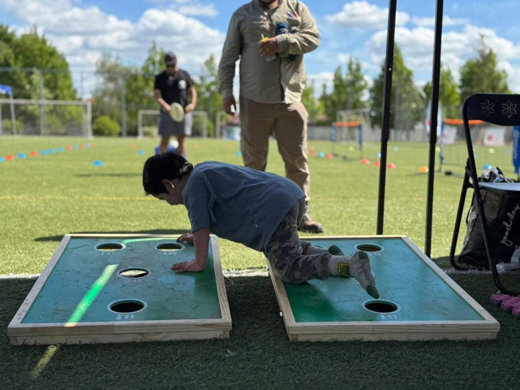 Durante la jornada, se instaló una zona de psicomotricidad, juegos inflables, mini fútbol, básquetbol, vóleibol y tenis de mesa, además de stands informativos sobre familias de acogida, salud y bienestar.
