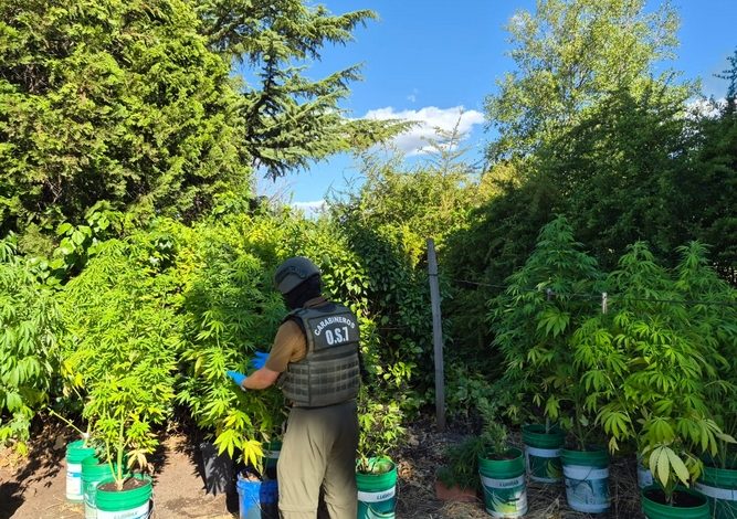 Los operativos se iniciaron con un allanamiento en un domicilio de la comuna de Bulnes, hasta donde el personal llegó luego de distintas diligencias de investigación, para desarmar un cultivo ilegal de cannabis y elaboración de marihuana.