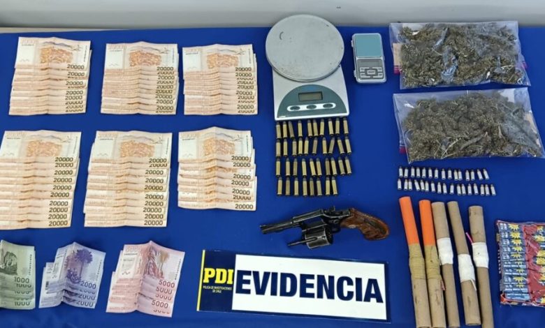 PDI San Carlos incautó fuegos artificiales, droga, un arma y municiones en Ñiquén