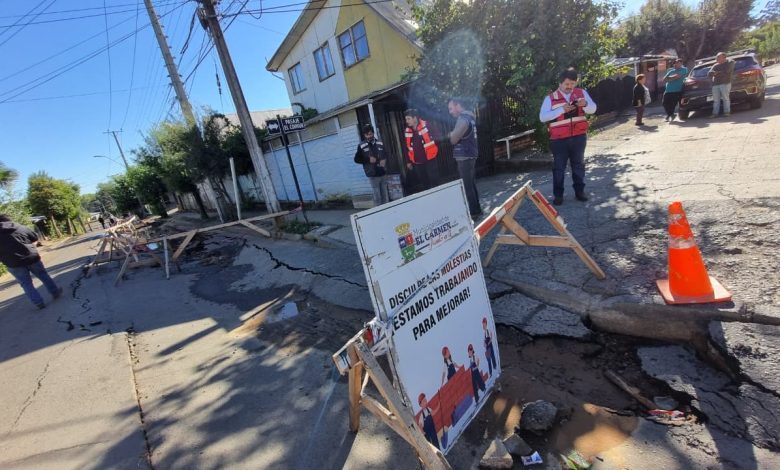 Una rotura de matriz de agua potable se originó la mañana de este miércoles en la población Mahuidantu I de la comuna de El Carmen, sector donde residen más de 200 familias y donde, desde hace 7 meses, existe un socavón en la avenida Pedro Núñez que se extiende por 70 metros de largo.