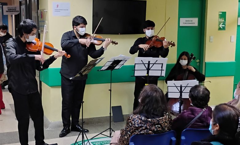 Con un repertorio compuesto por obras de Mozart, Strauss, boleros y valses peruanos, uno de los Cuartetos de Cuerdas de la orquesta regional realizó una intervención musical en dependencias de la Unidad de Oncología “Yasna Godoy Vergara” del Hospital Herminda Martin de Chillán.